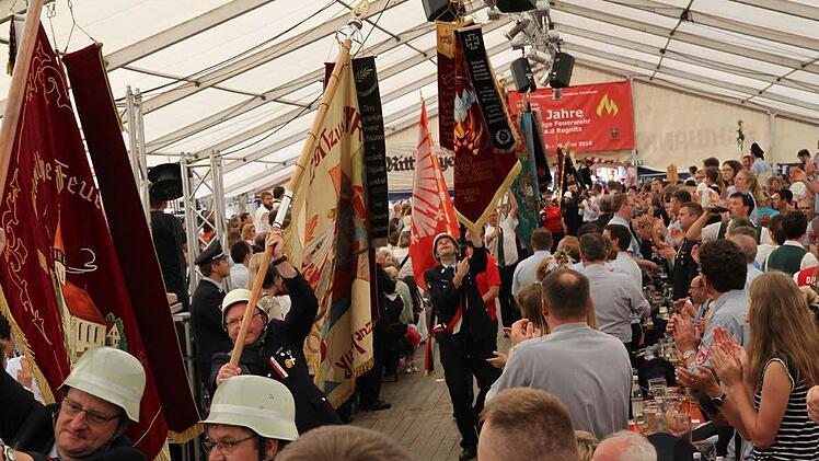 Das 2500-Mann-Zelt in Neuses war proppenvoll beim 125. Jubiläum der örtlichen Feuerwehr.