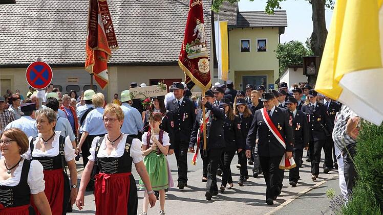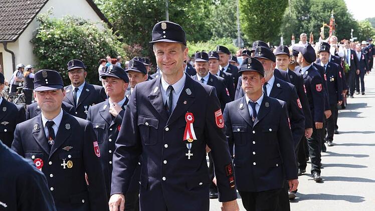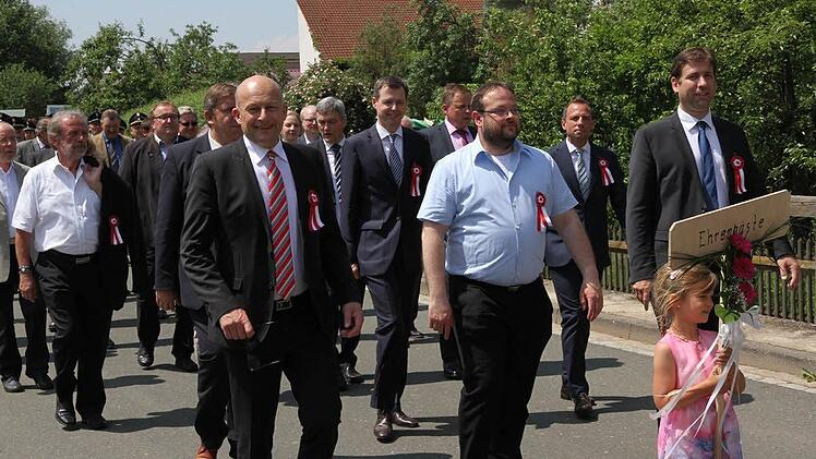 Es folgten die beiden Schirmherren Landrat Hermann Ulm und Bürgermeister Claus Schwarzmann, gefolgt von den Ehrengästen: die Bundestagsabgeordneten Thomas Silberhorn (CSU) und Andreas Schwarz (SPD); der Landtagsabgeordneten Thorsten Glauber (FW); Pfarrer Daniel Schuster und die Feuerwehrführungskräfte des Landkreises. Elf Musikkapellen, der Musikverein Pautzfeld, der Musikverein Eggolsheim, der Musik- und Gesangverein Unterstürmig, der Musikverein Pinzberg, die FFW-Kapelle Forchheim, die Blaskapelle Poxdorf, der Spielmannszug Jahn Forchheim, der Musikverein Heroldsbach, der Spielmannszug der FFW Hemhofen, die Stadtkapelle Höchstadt und der Musikverein Gößweinstein gaben beim Zug durch den Ort musikalisch den Takt vor.