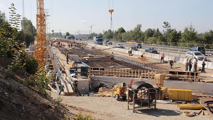 Die Autobahnbrücke über die Trubbach geht ihrer Vollendung entgegen. Nächste Woche wird die Asphaltdecke der etwa 100 Meter langen A73-Brücke in Forchheim in einem Stück betoniert.