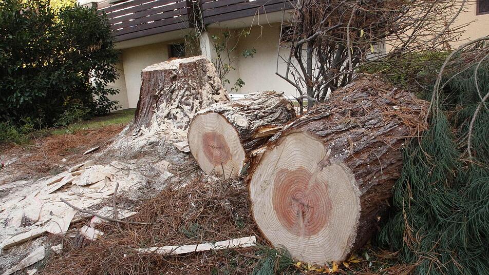 Exakt um 9.30 Uhr rücken die Mitarbeiter des Stadtgartenamtes am Montag dem 15 Meter hohen Mammutbaum in der Fichtenstraße in Reuth mit drei Motorsägen zu Leibe. Mehr als drei Jahrzehnte hat das Zypressengewächs die Familie Heidi und Manfred Wiechert begleitet.