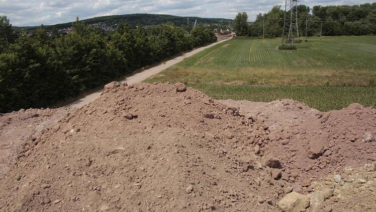 Das sind 30 000 Kubikmeter. Zwei Drittel davon, etwa 2000 Lkw-Ladungen voll, sind bereits auf dem künstlichen Berg zwischengelagert. "Aber es bleibt nicht da", verspricht Jöbstel. Alles werde wieder zurückgebaut. Diesmal soll der Lehm mit Kalk und Zement vermischt werden, um größere Stabilität zu gewinnen. Da sich der Feuerletten mit Wasser vollsaugte und bei großer Trockenheit sehr spröde wurde, waren die Schutzplanken locker geworden. Dies sei auch der Grund, warum das Material nun ausgebaut werden musste.