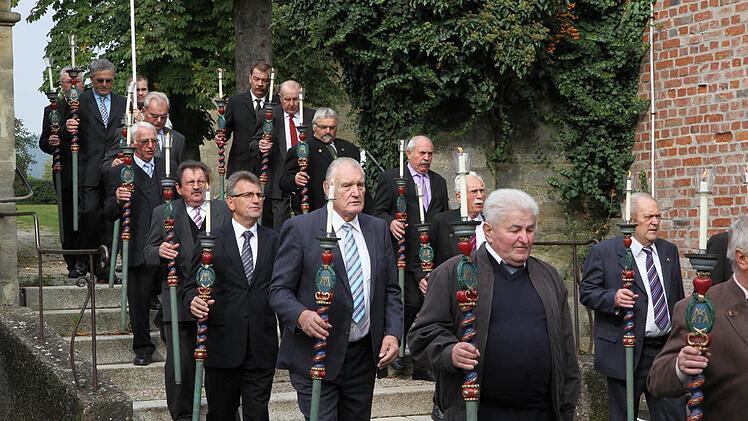 Die Rosenkranzbruderschaft der Pfarrei St. Martin hat in Eggolsheim ihr 300-jähriges Bestehen gefeiert. Im Jahr 1713 hatte Kaplan Christoph Diller die Bruderschaft mit Erlaubnis von Pfarrer Philipp Ott gegründet. Sie besteht aus 18 Stabträgern, den sogenannten Konsultoren.