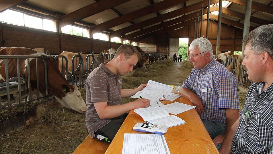Schon seit Jahren werden die praktischen Prüfungen auch auf dem Hof von Heinrich Schwarzmann in Neuses abgenommen. Die praktische Prüfung dauert sechs Stunden. Tobias Schmitt aus Oberehrenbach ist gelernter Bautechniker und hat sich über das Bildungsprogramm Landwirt (BiLa) sein Wissen angeeignet.