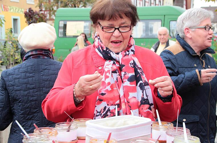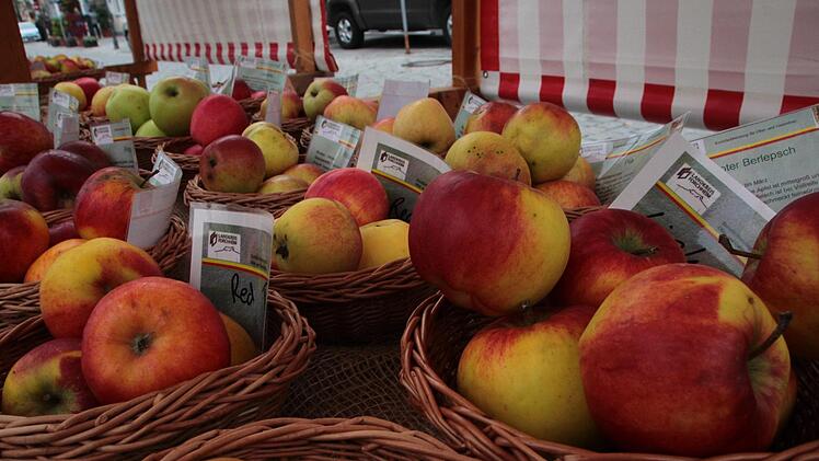 Der besondere Service der beiden: Sollten Besucher des Obsttags in Ihrem Garten noch einen Apfelbaum aus Urgroßvaters Zeiten haben oder einfach nicht wissen, um welche Apfelsorte es sich handelt, würden die Apfelexperten das ergründen. Hatte man noch keinen Baum, konnte man auf dem Marktplatz fündig werden. Dort stand Gärtnerin Theresia Fröhme von der Baumschule Schmidtlein mit Rat und Tat zur Seite, für den Fall, dass sich Besucher Obstbäume oder andere Gewächse zulegen wollten. Auch in beratender Funktion, wie man Bäume zu pflegen sind, half sie den Besuchern.