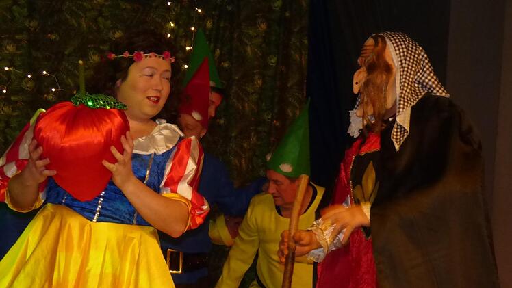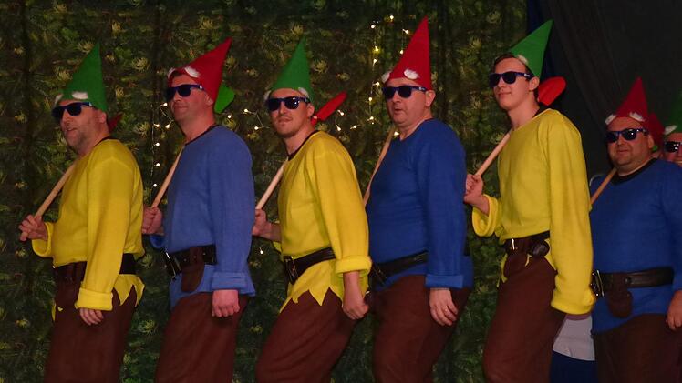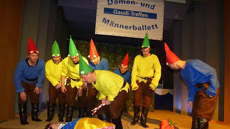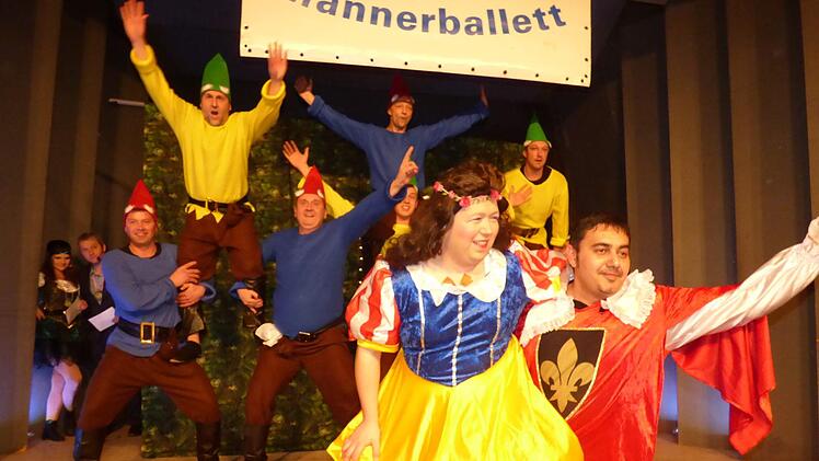 Akrobatik höchster Klasse zeigte das Männerballett "Hopfentropfen" von der Faschingsgesellschaft Schwarz-Weiß Bayreuth, auch mit einem Piratentanz den sie "Auf hoher See" nennen. Zum Schießen komisch die Showtanzgruppe "Ranz`n Dancer" aus Kulmbach, der heimlichen Hauptstadt des Bieres. Die Männer retten als Zwerge aus dem Buchwald schließlich doch noch das Schneewittchen, dem es danach gar nicht mehr so gut ging.