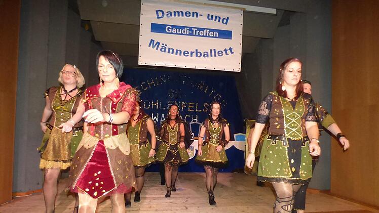 Tolle Kostüme hatten auch die Bayreuther Hexen von der gleichnamigen Faschingsgesellschaft, die frei nach Robin Hood als Heldinnen in Strumpfhosen für eine Riesengaudi sorgten. Die 16 Damen der "Maxi Dancer" aus Kühlenfels begaben sich auf eine Zeitreise durch die jüngere Musikgeschichte und die Happy Dancers von Schwarz Weiß Bayreuth luden nach Mexiko ein.