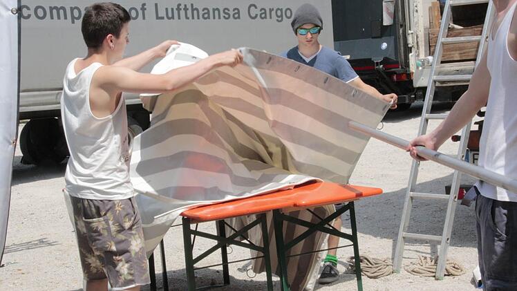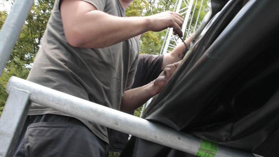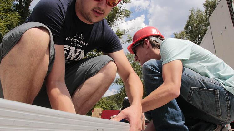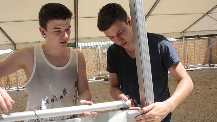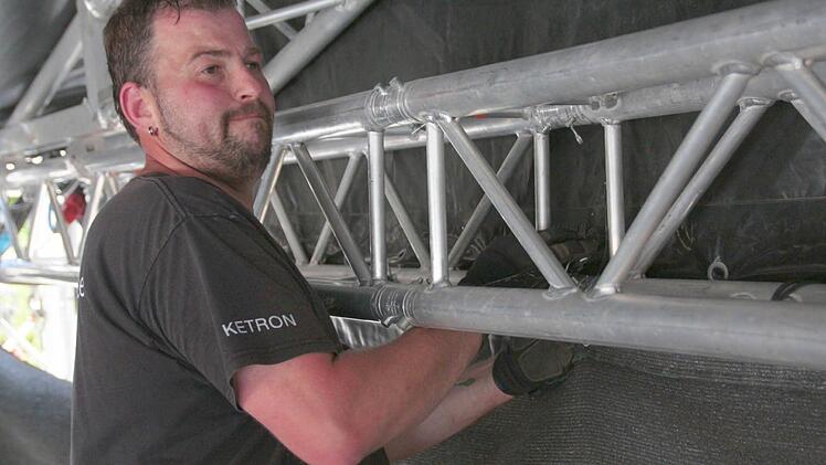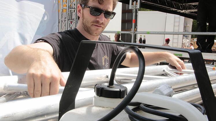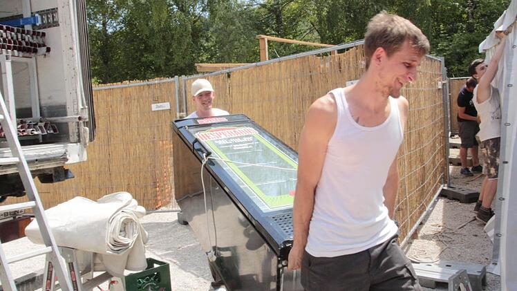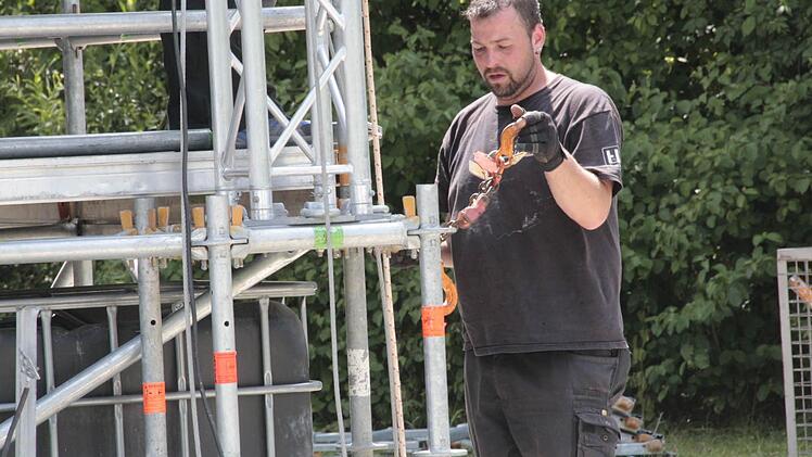 Der Campingbereich nebenan ist bereits abgesteckt, und die Männer der Freiwilligen Feuerwehr Ebermannstadt befüllen die 4000-Liter-Tanks an den Ecken der Hauptbühne mit Wasser. "Das erhöht die Standfestigkeit", erklärt Jugendpfleger Andreas Kirchner, der an allen Ecken und Enden gebraucht wird. "Auch wenn es jetzt noch etwas chaotisch aussieht, es wird ein tolles Fest", ist Kirchner überzeugt.