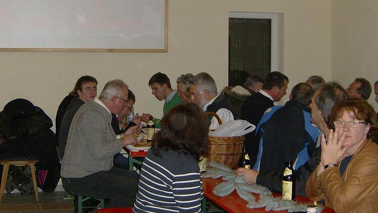 Keine Plakate, keine Banner Im Gemeinschaftshaus herrscht ein reges Kommen und Gehen. Fränkische Brotzeit wird in den großen Raum getragen, in dem etwa 70 Menschen Platz haben. Manche der Leute gehen wieder nach draußen, trinken eine Tasse Glühwein und reden über den Medienrummel, der in den vergangenen Tagen über den kleinen Ort hereingebrochen ist.