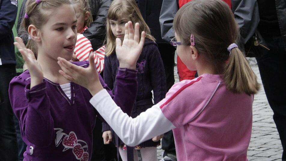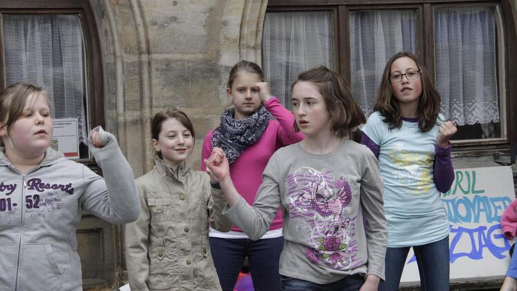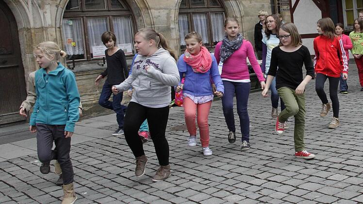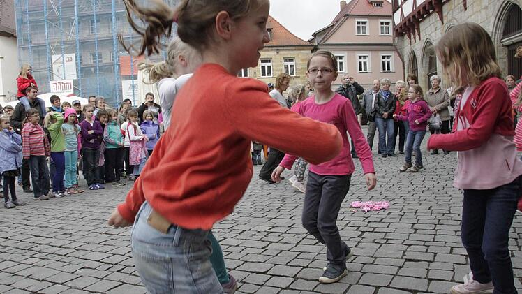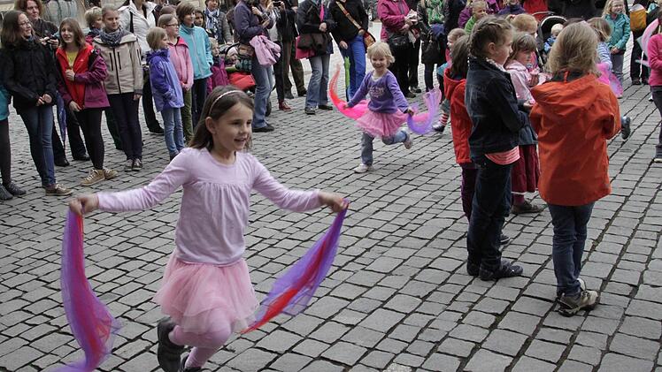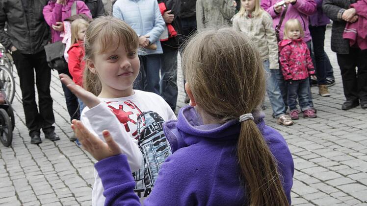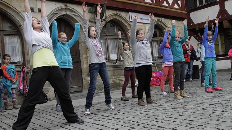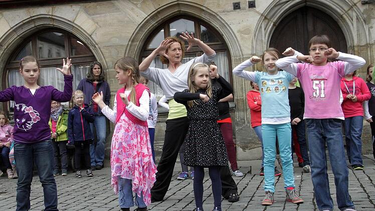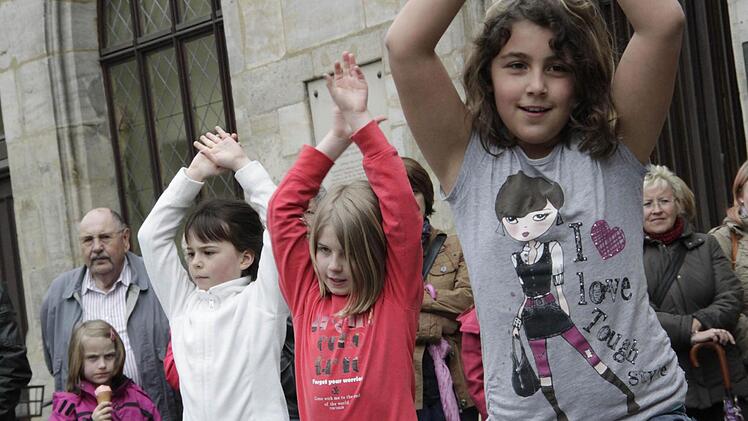 Die Choreografien zu den Musikstücken, die Birgit Gareis mit rund 60 Kindern zwischen fünf und zwölf Jahren einstudiert, hat sich die Tanzpädagogin selbst ausgedacht. Zum "internationalen Tanztag" präsentierten die Kinder auf dem Rathausplatz eine Palette einstudierter Bewegungsformen, angefangen vom Kindertanz bis zu "Move in the right Direction" von Gossip aus den aktuellen Charts.
