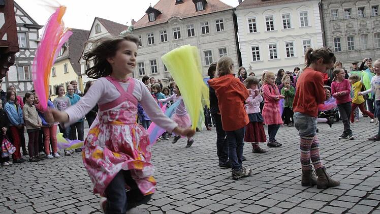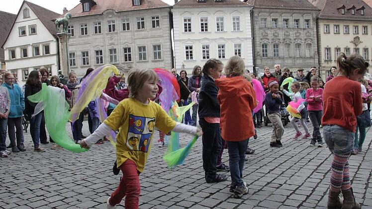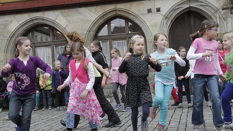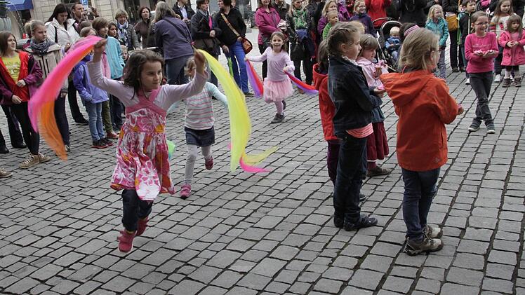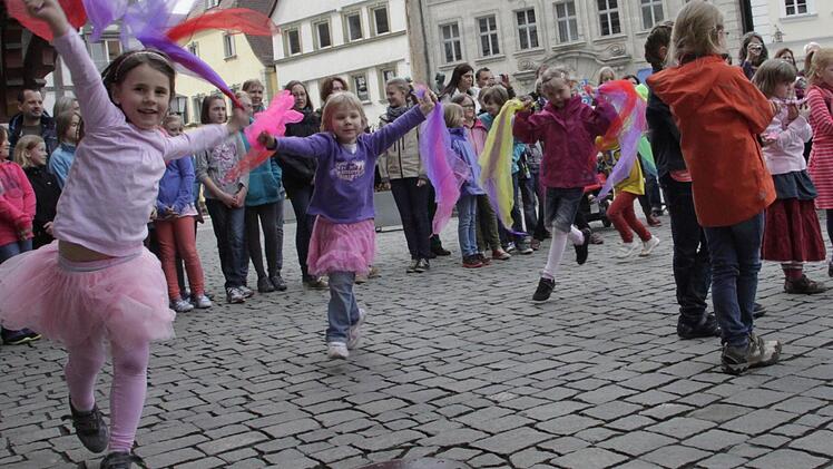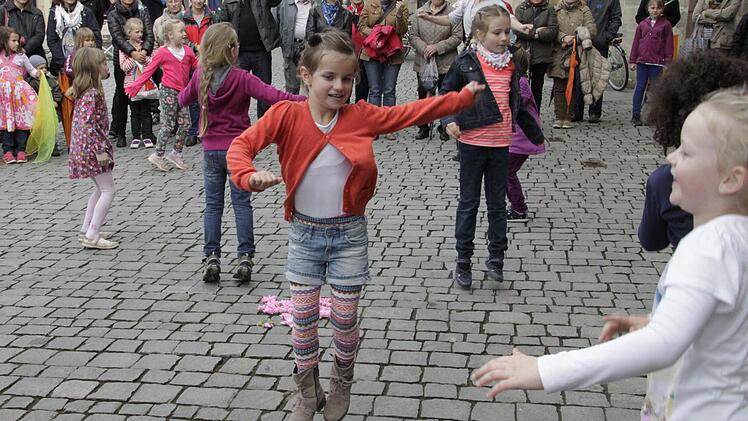 Zum internationalen Tanztag zeigten Kinder zwischen fünf und zwölf Jahren auf dem Rathausplatz bei ihren Tänzen Körpereinsatz total.