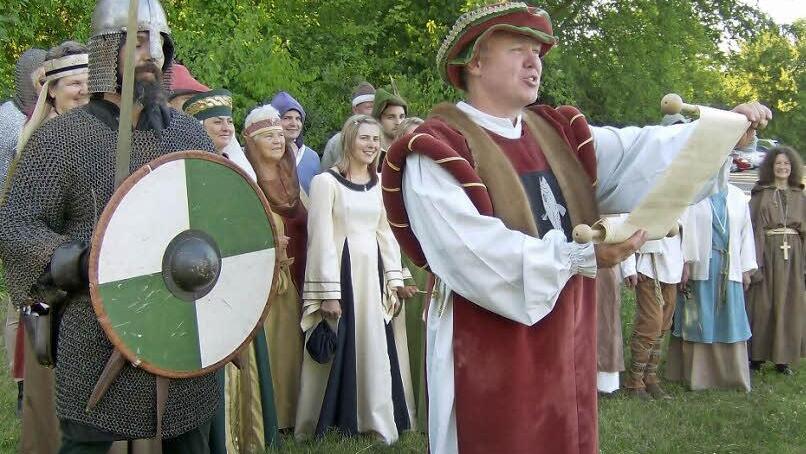 Laufer zeigt auch, wo die Hochzeitsgeschenke abgestellt werden sollen und wie die Mitwirkenden regungslos verharren. Statisten sind all jene Laienschauspieler, die in dem Theaterstück von der Hochzeit des Ritter Wirnt von Gravenberg keine Sprechrolle haben.