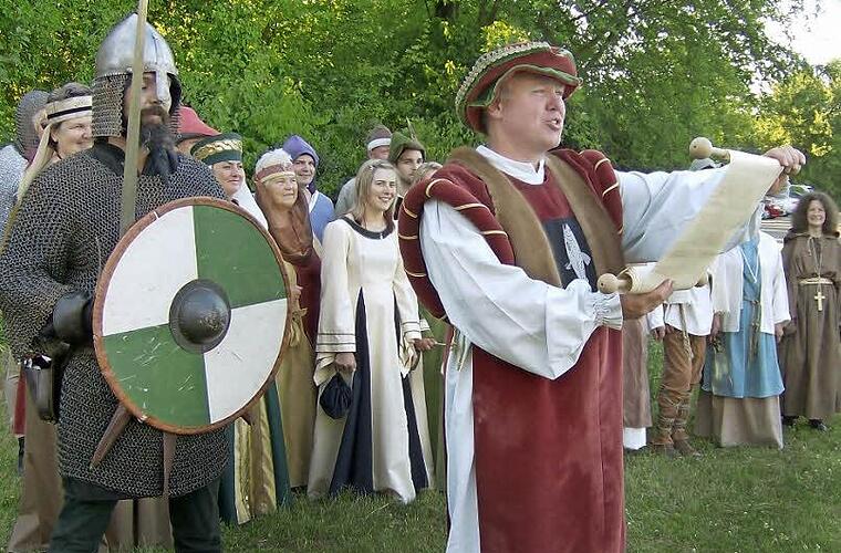 Beim Gräfenberger Bürgerfest lassen sie ihn nun Wiltraude aus Wolfsberg heiraten. Läuft die Dame links oder rechts? Wer folgt dem Brautpaar? Diese und weitere Fragen hat Gertraud Kasch mit ihren Festzugmitwirkenden in den zurückliegenden Wochen geklärt. Denn nicht nur der Ritter und seine Braut, sondern die gesamte Gefolgschaft, Bauern, aber auch Handwerksleute laufen mit.