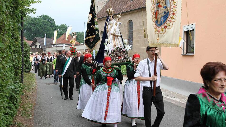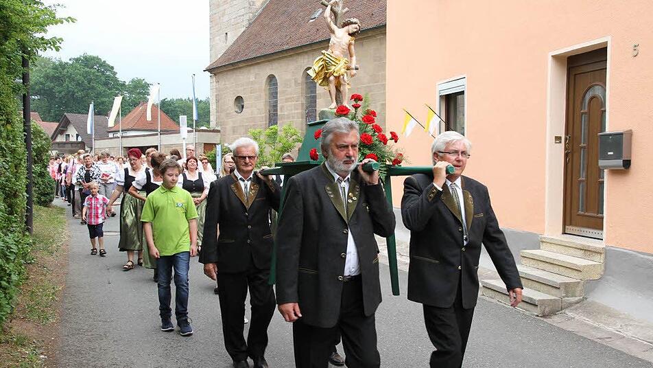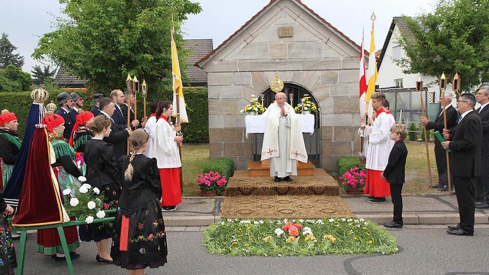Die Prozession wird von der Gemeinde ausgerichtet. Nach dem feierlichen Gottesdienst in der St. Wolfgangskirche zogen die Gläubigen unter den Klängen der Kirchenmusikkapelle "Heilig's Blechla" mit Pfarrer Franz Noppenberger zunächst zu einem eigens aufgebauten Altar am Friedhof und dann zum Altar an der "Obenauf-Kapelle".