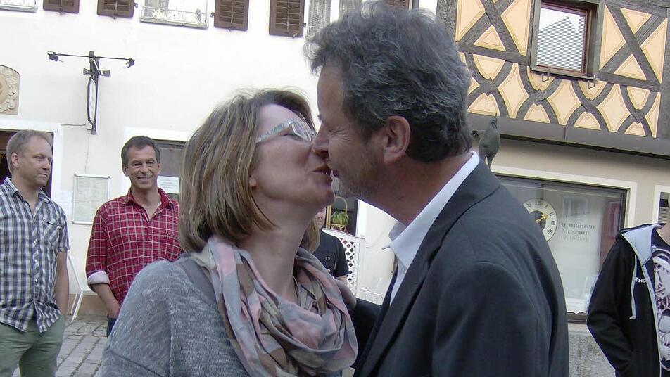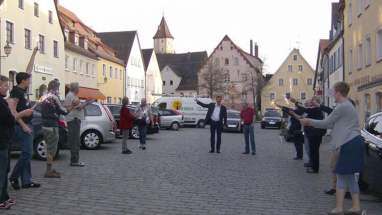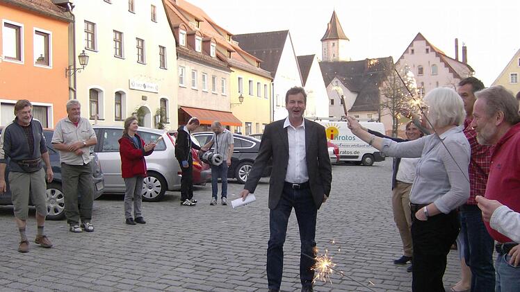 Als der künftige Bürgermeister über den historischen Marktplatz zum "Eckala", dem Lokal der Wahlparty lief, bildeten die Bürger und Parteianhänger mit Sternchenspeier in den Händen eine Gasse, um ihrem neuen Stadtoberhaupt zuzujubeln. "An Tagen wie diesen" dröhnte aus einem Radiorekorder, während viele Gratulanten Hans-Jürgen Nekolla umarmten und ihre Glückwünsche aussprachen.