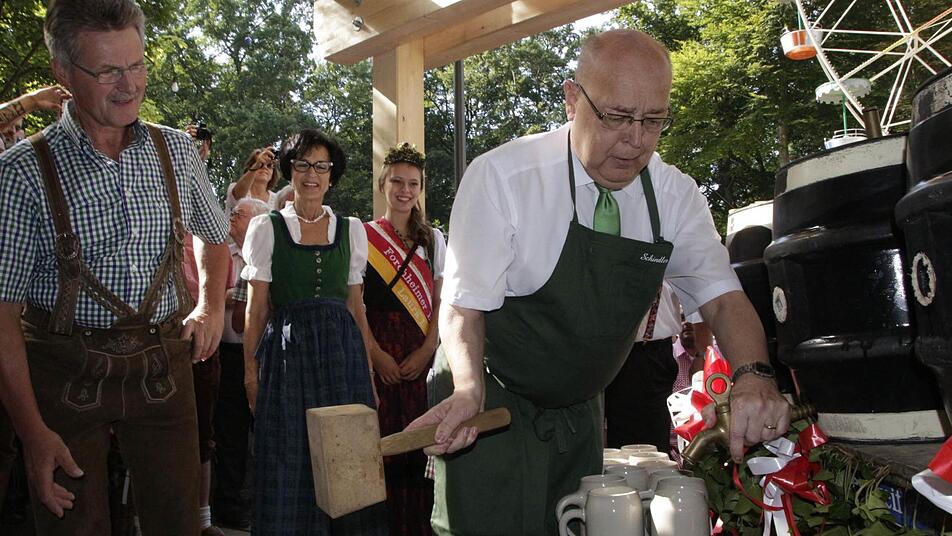 Ehe Oberbürgermeister Franz Stumpf (CSU/ WUO) auf dem Schindler-Keller das erste Fass Festbier des 175. Annafestes anstach, hieß er dazu die Gäste aus den Partnerstädten willkommen. Bei den Schaustellern bedankte sich Stumpf, dass sie die Fahrgeschäfte und Buden so schön hergerichtet hatten. Seinem Vertreter Franz Streit galt ein Sonderlob für die Organisation der Jubiläumsausgabe des Annafestes.