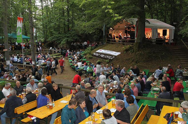 Kellerwirt Jonathan Wunderlich freute sich über die vielen Gäste, die von nah und fern gekommen waren: Sogar eine japanische Delegation aus München genoss das bunte Treiben. "Das Ambiente hier mitten in der Natur ist herrlich", meinte Yasuhiro Ikeuchi. Ulla und Hermann Schönleben waren aus der Nähe von Neustadt Aisch angereist. "Wir sind das erste Mal hier, werden aber im nächsten Jahr wiederkommen", meinte Ulla Hermann.