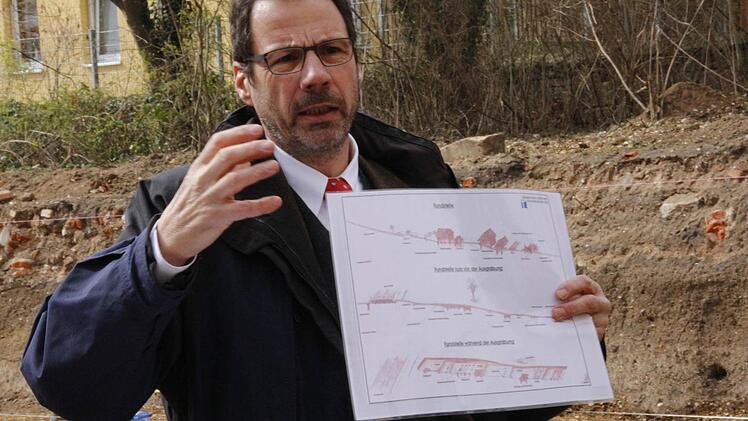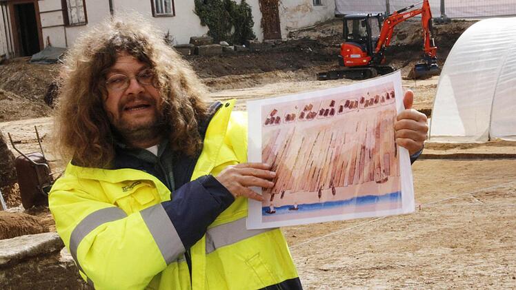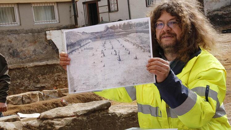 Dank der Pfostenlöcher sind eindeutige Gebäudegrundrisse erkennbar, erklärt Grabungsleiter Bernd Ernst. Er geht davon aus, dass auf dem Klosterareal, auf dem die Erlanger Immobilienfirma Sontowski und Partner eine Wohnanlage errichtet, schon vor der ersten urkundlichen Erwähnung schwunghafter Handel betrieben wurde.