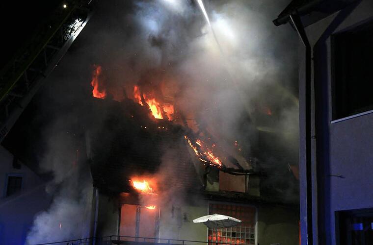 Nach dem Brand einer Flüchtlingsunterkunft im oberfränkischen Gößweinstein (Landkreis Forchheim) hat die Polizei vorerst keine Hinweise auf eine fremdenfeindliche Tat gefunden. Da der Auslöser des Feuers jedoch zunächst völlig unklar blieb, betonte ein Polizeisprecher: "Wir schließen keine Ursache aus."