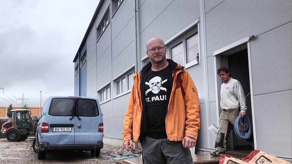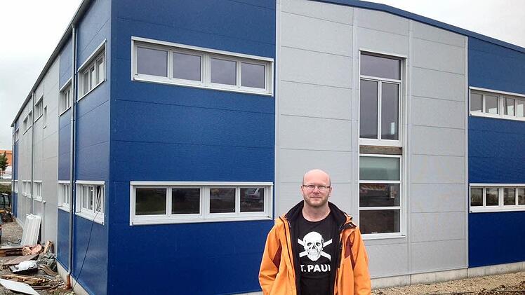 Außen blau, innen grau: Das neue Gebäude des Athleten-Clubs Forchheim nimmt Gestalt an. Jörg Wiemann setzt auf den neuen Standort im Gewerbegebiet und hofft auf viele neue Mitglieder für das Fitnessstudio.