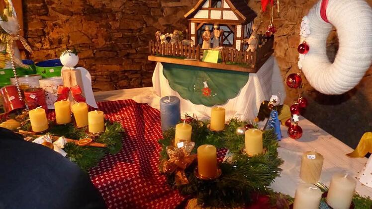 Im Schlosshof Unteraufseß und der Brauscheune präsentierte und verkaufte der Verein gebastelte Gegenstände. Im Schlosshof gab es ferner Bücher, Weihnachtsschmuck, Glühwein und Weihnachtsgebäck