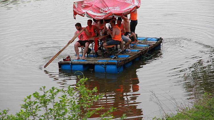 Eine Biertischgarnitur auf dem Floss sorgte für die bötige Gemütlichkeit. "Kapitän" Lutz Reinhold, der das selbst gebaute Floß als "hochseetauglich" einstufte, musste aus unerklärlichen Gründen einmal "Mann über Bord" melden. Doch die acht Seemänner ließen sich davon nicht beeindrucken und schmiedeten schon Pläne für das nächste Jahr: Dann soll das Floß einen Grill bekommen.