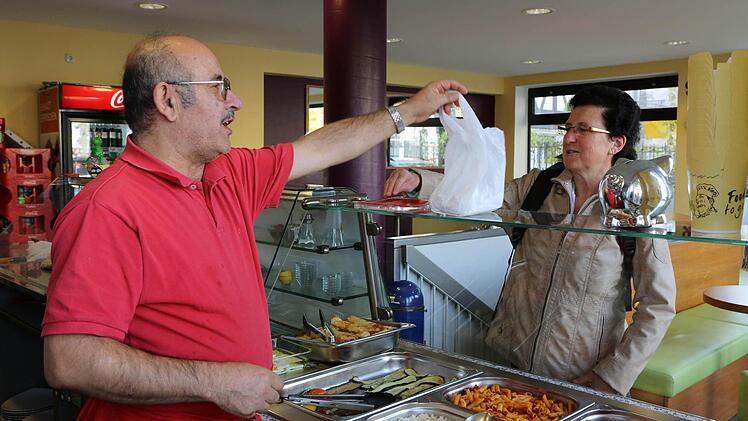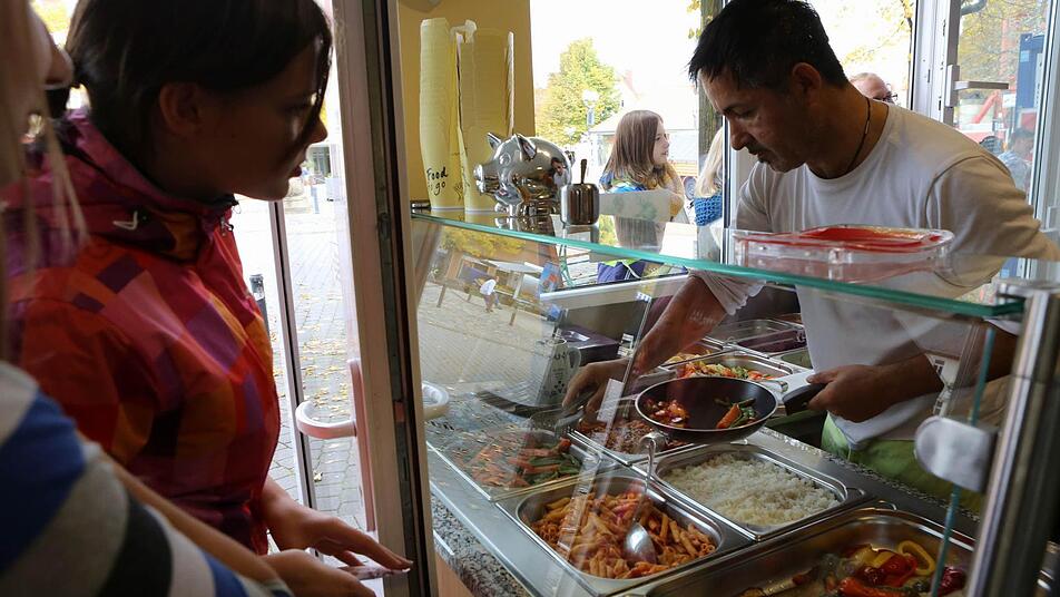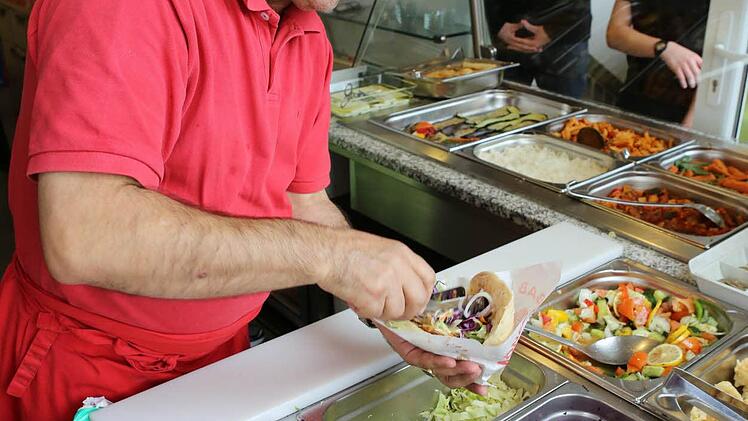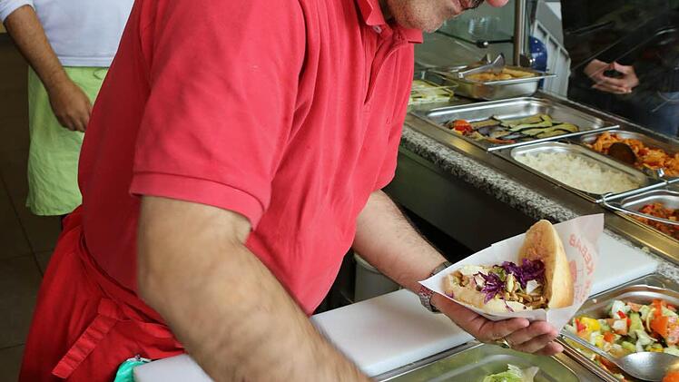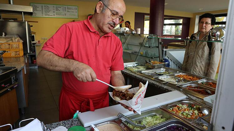 Hinter der Salat-Theke dreht sich ein Fleischspieß in der Ecke. "Einen Döner bitte", sagt Agnes Schmitt. "Mit allem?", fragt der Mann mit Brille, Bart und rotem Polo-Shirt. "Ohne Zwiebeln. Und zum Mitnehmen." Sie komme gerne, erzählt die Frau aus Oesdorf, während der türkische Burger immer dicker wird. "Es schmeckt einfach und hier sind alle immer freundlich."