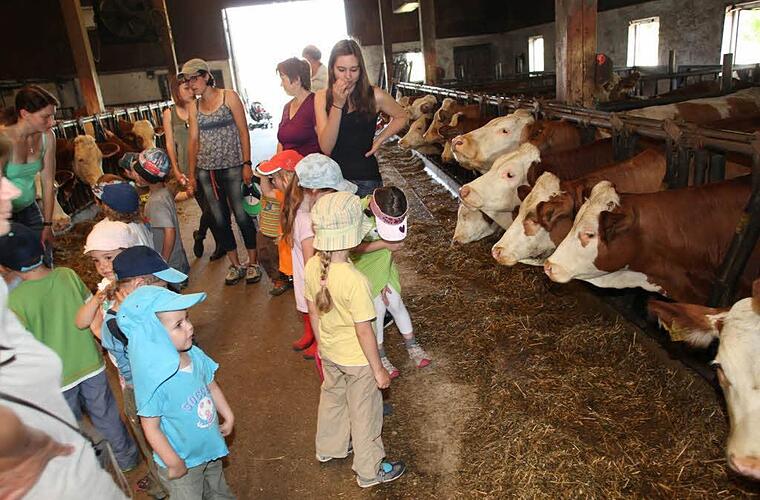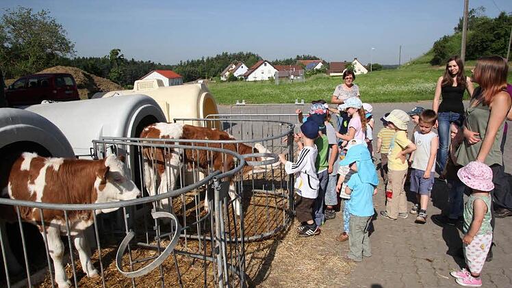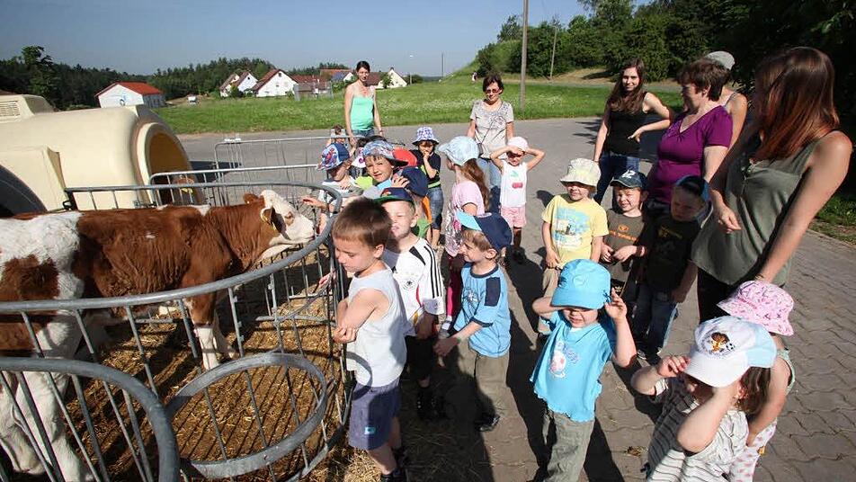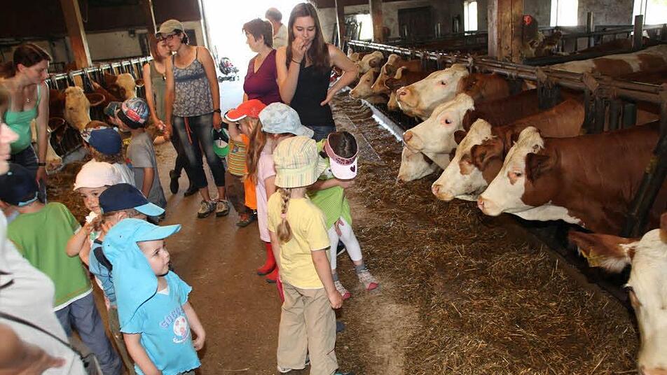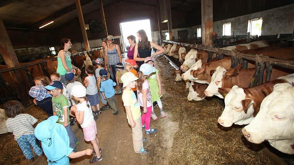 Auf einem Bauernhof lernen Aufseßer Kinder, wo ihr Essen herkommt.