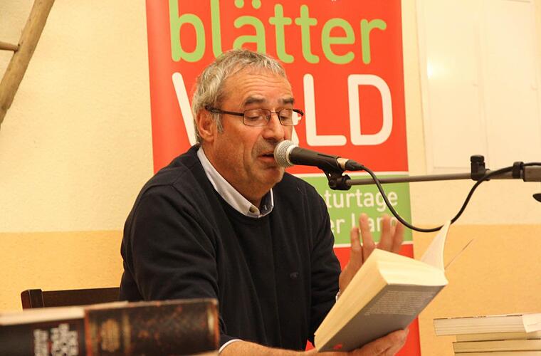 Den gespannt wartenden Zuhörern im vollen Saal versprach er einen kurzweiligen Abend. Seine Lesungen wechselten immer wieder mit selbst erlebten Geschichten aus dem wahren Alltag in Franken. Und in den Wirtschaften, denn dort hat seine Kunstfigur - der schrullige Kommissar Friedo Behütuns - schon so manchen seiner Fälle gelöst.