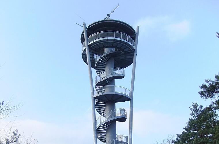 Enorme statische Anforderungen bot die Kanzel, welche allein über 20 Tonnen schwer ist. Die Turmoberkante liegt bei 34,50 Metern, die Aussichtsplattform immerhin auf 25 Metern Höhe. Nach oben gelangt man über die futuristische Treppenanlage mit mehreren Zwischenplattformen, die zum Ausruhen einladen.