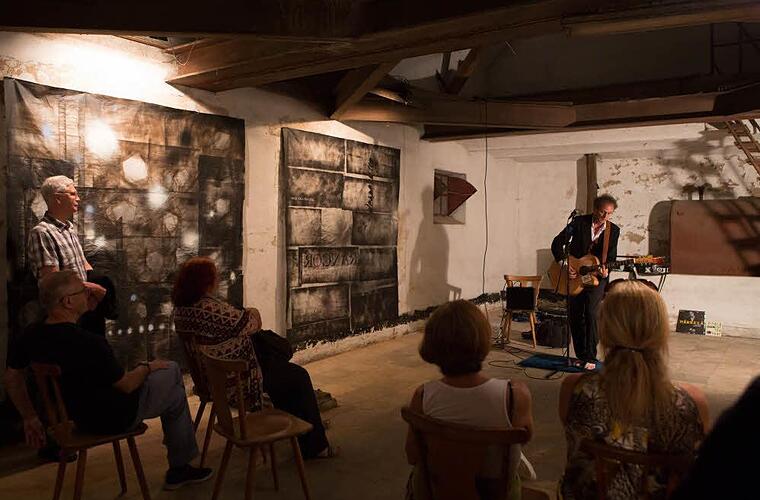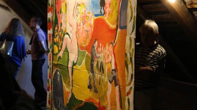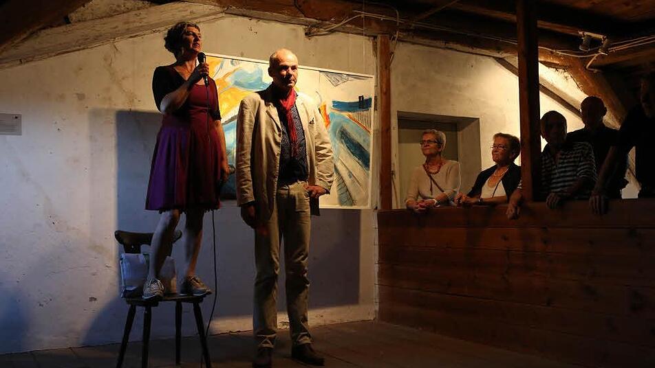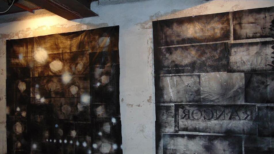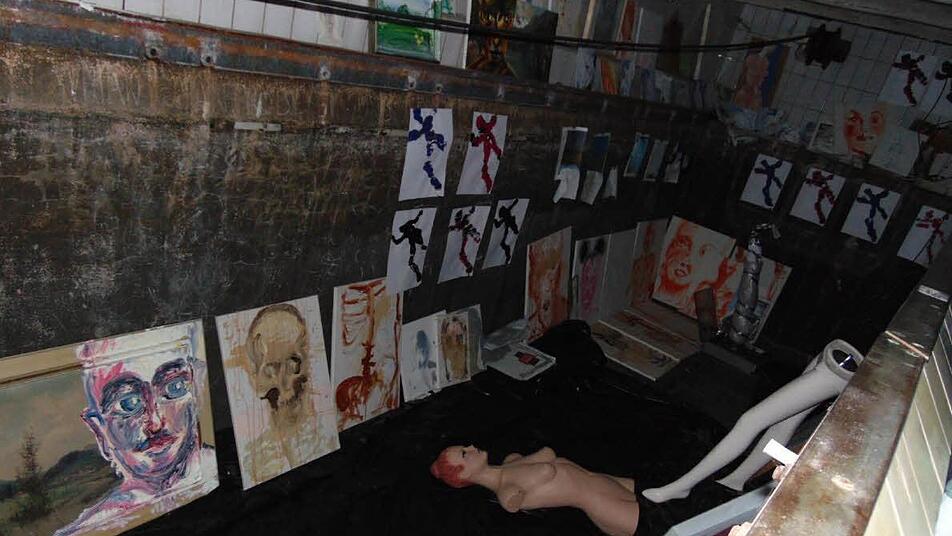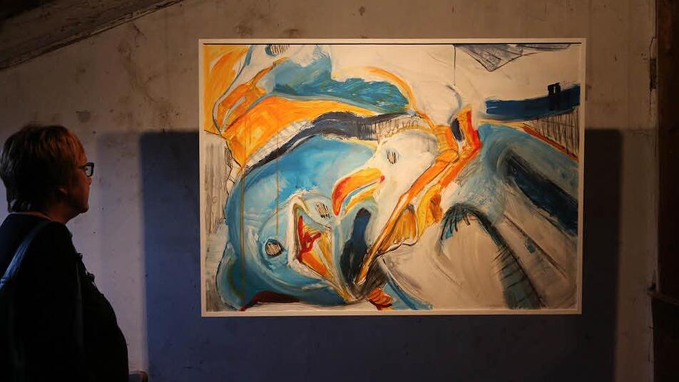 Eher düster, ohne düstere Farben eingesetzt zu haben, wirken die Werke im alten Mälzraum.