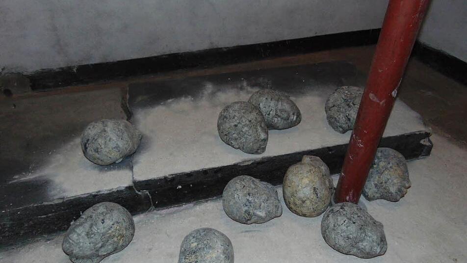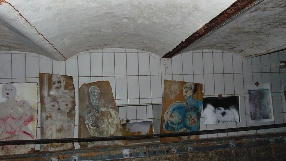 Lange arbeitete der Künstler Uwe Gerhardt an seinen Zeichnungen, hat sich monatelang auf diese Ausstellung vorbereitet. Es ist der passende Raum für diese Ausstellung. Zwiespältigkeit drücken auch die Werke von Eva Mandok aus. Sie fertigte Köpfe aus arabischen Zeitungen. Die Köpfe lachen, haben eine Kindergröße. Gaza. Kinder, die getötet wurden, obwohl sie eigentlich lachend im Sand spielen sollten. "Tristesse einer glücklichen Welt" ist der Titel der Werke von Christian Vittinghoff.