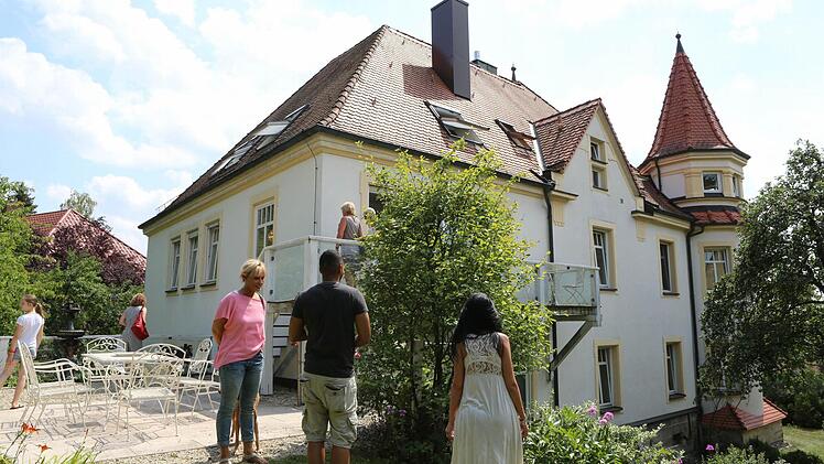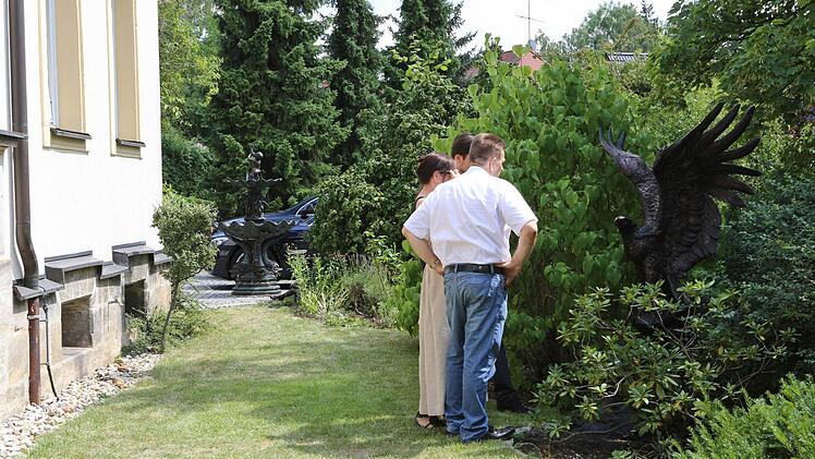 Anwesen für eine "Alters-WG"? Das Haus bietet 400 Quadratmeter Wohnfläche mit etwa 14 Zimmern und wird umrahmt von einem idyllischen Garten, der über den Vorhof oder einen kleinen Balkon hinter dem Haus zu erreichen ist. Eine Besuchergruppe scherzte, dass sich das Anwesen für eine "Alters-WG" gut anbieten würde.