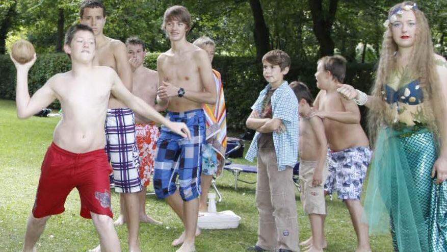 Für die 17-jährige Wolfrum Jacob ist es nichts Besonders, verkleidet und barfuß durch die Liegewiese des Freibads zu flanieren. Sie ist schon immer dabei gewesen,    wenn in Egloffstein der  "Karibik-Tag" gefeiert  worden ist.   In wechselnden Funktionen zwar, aber immer  mittendrin statt nur dabei.
