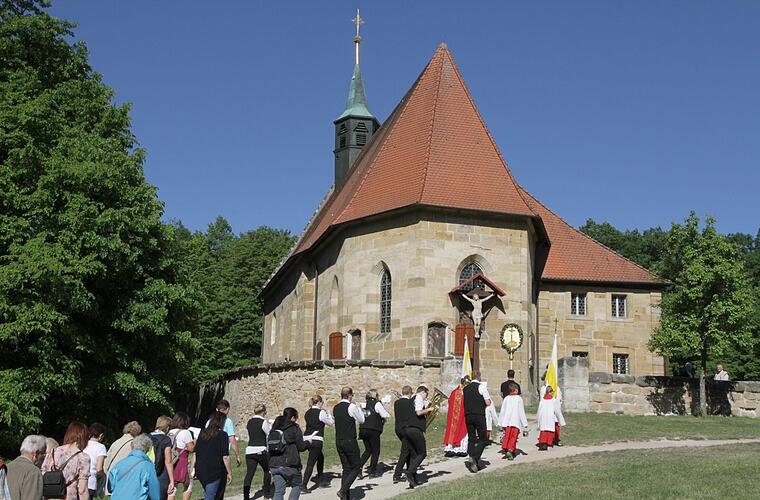 Die Kreuzbergkirche "Heilig Kreuz" bei Hallerndorf war das Ziel vieler Wallfahrergruppen aus der ganzen Umgebung.
