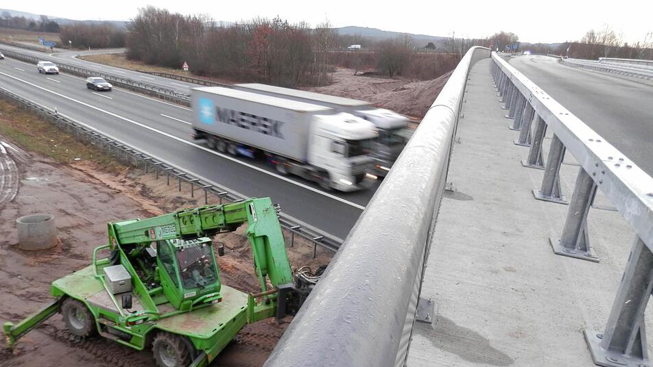 Der Verkehr auf der neuen Autobahnbrücke Baiersdorf-Nord (A73) fließt. Jetzt geht es wieder auf direktem Weg von Kersbach nach Baiersdorf. Die Straßenmarkierung fehlt allerdings noch - weil die Arbeiter in die Winterpause geschickt wurden.
