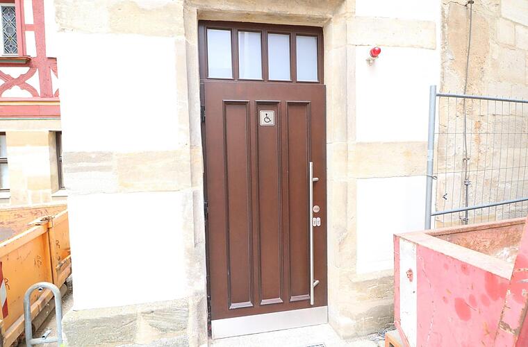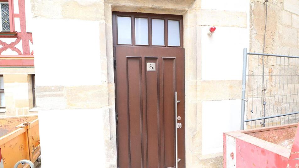 Alle nichtstatischen Gebäudeteile im Rathaus Forchheim werden ausgebaut. Für die Entsorgung wird der Bereich der Behindertentoilette benötigt.
