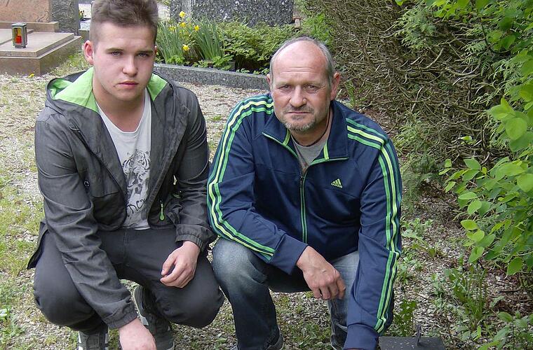 "Der Muttertag war besonders schlimm", erinnern sich Werner und Marco, während sie am Grab stehen. "Immer wurde ein Muttertagsgeschenk gebastelt. Nur Marco und Pascal schrieben ,Für Papa, wir haben dich lieb'", erzählt Werner Haala.