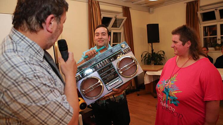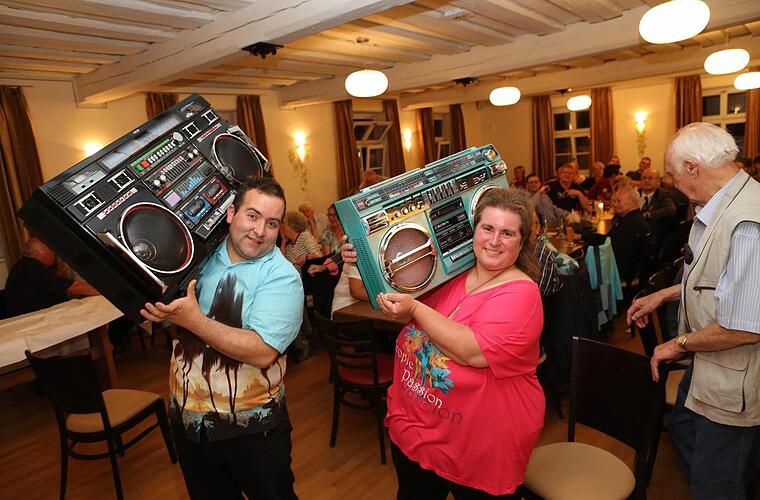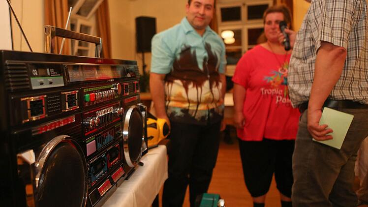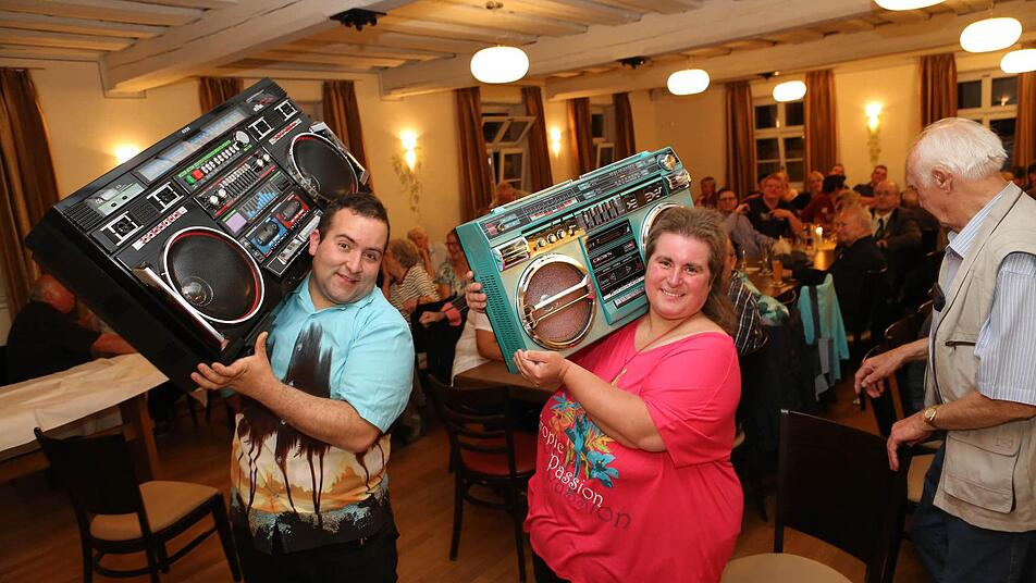 Heute sind Bröse 29 und Heißenstein 31 Jahre alt. Sie arbeitet in der Elektromontage, er ist Heizungsbauer. Ihre gemeinsame Wohnung in Dormitz zieren mittlerweile 285 Ghettoblaster, und damit ist das "die größte Boombox-Sammlung Bayerns". Schon nach wenigen Minuten ist im Saal klar: Ihr Alleinstellungsmerkmal haut alle um. "Sag mal kennst du die?", die ältere Dame stupst überrascht ihren Mann an. Der Auftritt von den "Frankenblaster" ist eine Überraschung.