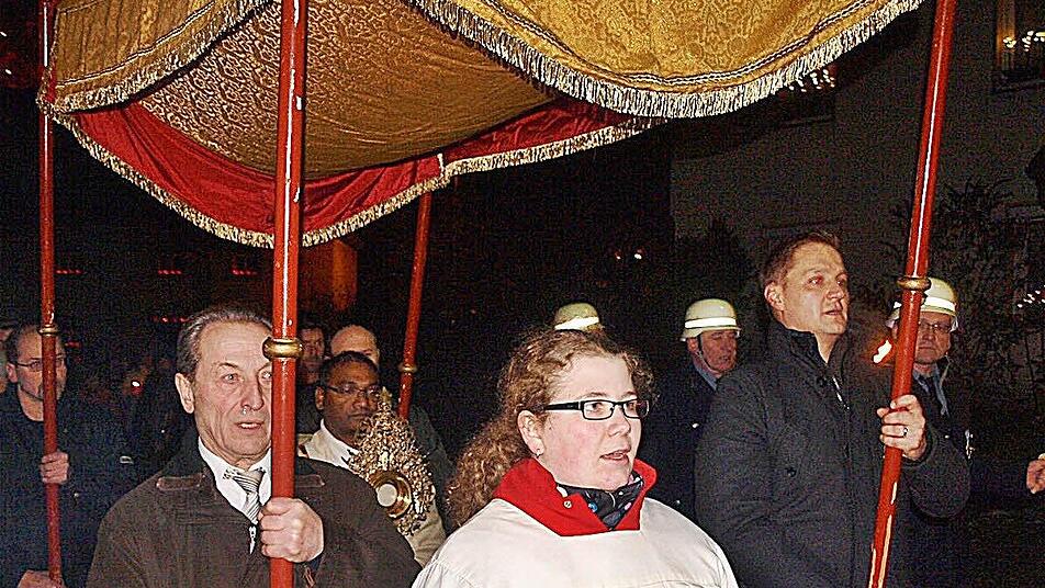 Am Prozessionszug selbst, der von drei Fahnen tragenden Ministranten und Feuerwehrchef Christian Görl angeführt wurde, beteiligten sich etwa 700 Gläubige.