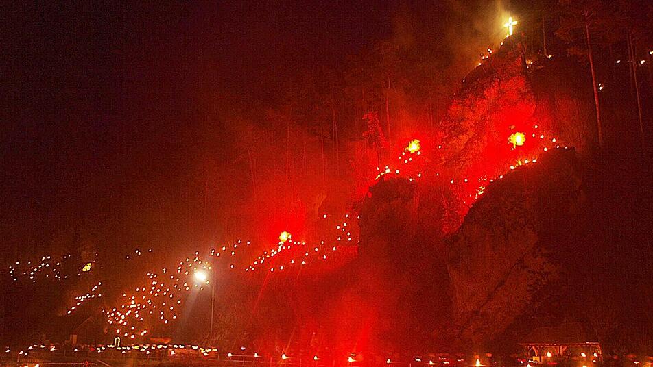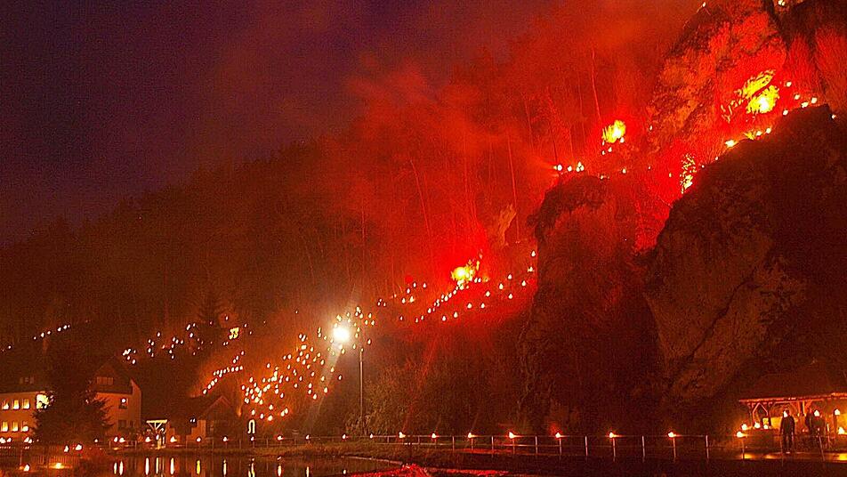 Martinus aus in Bewegung setzte, brannten die Lichter auf den Felsen, an der Wiesent und den Straßenrändern.