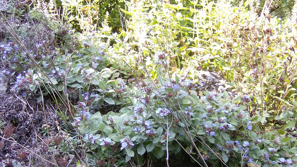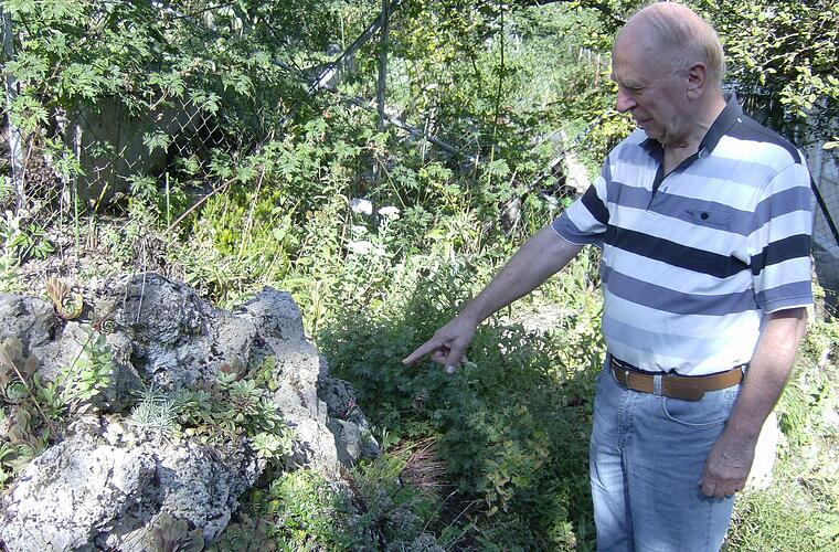 Große Kiefern auf der linken Seite beschatten den meterhohen Steingarten, der mit Dutzenden Sorten von Steinbrecharten besticht, ohne gleich ins Auge zu stechen. Einen Aha-Effekt gibt es nicht. Trautners Blumen, Pflanzen und Blüten - vor allem einheimische Wildpflanzen, die teils unter Naturschutz stehen oder in Freiheit selten geworden sind - fordern einen zweiten Blick. In diesen Tagen nimmt der Betrachter zunächst nur das 3000 Quadratmeter große Grundstück wahr, in dem sattes Grün dominiert.