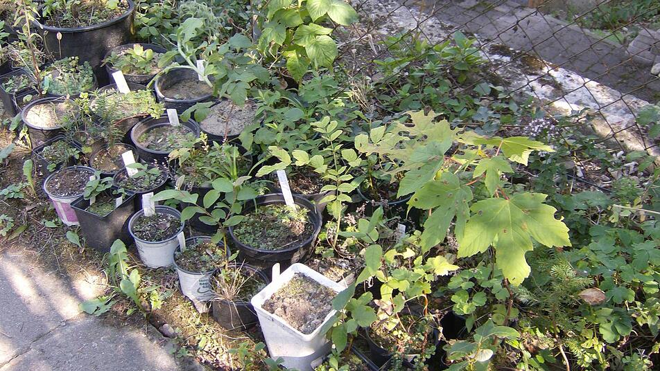 "Er setzt sich nicht hin", wirft Trautners Ehefrau Brigitte lachend ein. Zuviel Interessantes findet der Hausherr täglich in seinem Garten. Auch sie hat momentan mit dem vielen Obst alle Hände voll zu tun, versorgt die Familie mit frischen Obstsaft, kocht Marmelade, backt Kuchen oder die Trautners verfeinern ihr Frühstücksmüsli mit den Beeren. Viele kleinere und größere bepflanzte Töpfe stehen am Rand der Beerensträucher. "Aus jedem Blumensamen züchtet er Pflanzen", erklärt Brigitte Trautner. So auch den einheimischen Seidelbast, der in vielen weiteren Töpfen an der Hauswand entlang aufgereiht ist.