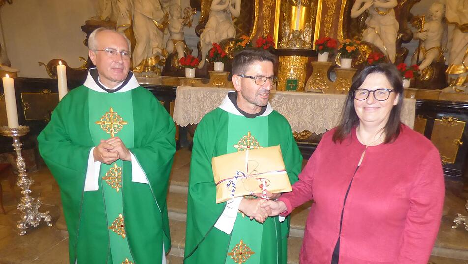 Herzlich verabschiedeten sich bereits am Sonntagvormittag auch die Gläubigen und alle Vereine der Pfarrei St. Erhard in Wichsenstein von ihrem Pfarrer Pater Flavian Michali mit einem Festgottesdienst, der von der Männerchorgemeinschaft Gößweinstein-Wichsenstein-Geschwand umrahmt wurde. Der stellvertretende Pfarrgemeinderatsvorsitzende Joachim Roppelt äußerte große Anerkennung für die Umsetzung vieler Vorhaben, würdigte und lobte Pater Flavians Art und Weise, verschiedensten Situationen gerecht zu werden. Mit den besten Wünschen für seine Zukunft und vielen Geschenken wurde er schweren Herzens verabschiedet.