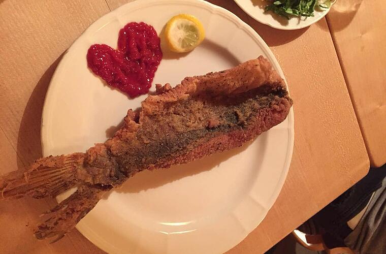 Die auf Anfang 20 geschätzte junge Frau, sicher ein Opfer der Fast-Food-Generation, bat um Ketchup als Beigabe zum bestellten Karpfen-Filet. Auch den Tischnachbarn stellten sich bei diesem kulinarischen Frevel die Nackenhaare wie Schuppen auf, viele warfen entsetzt die Flossen vors Gesicht. Es half nichts: Den Teller mit der panierten Köstlichkeit verzierte am Ende ein rotes Herz aus Tomatenmark-Zuckergemisch.