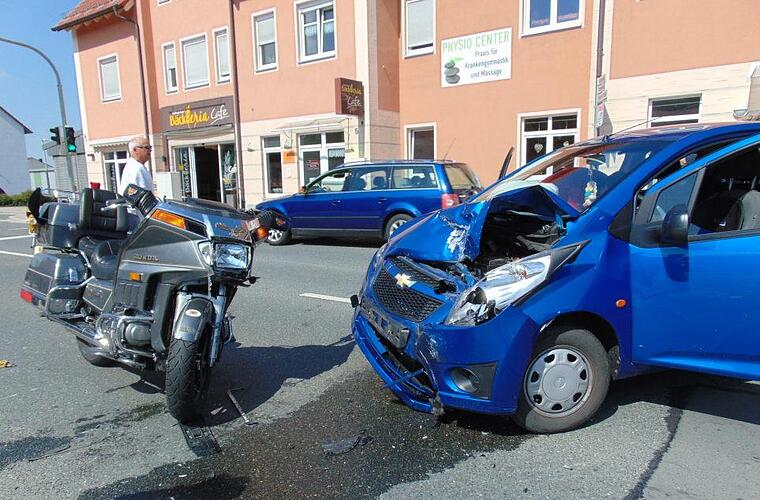Igensdorf, in Höhe der Apotheke und des B2 - Ladens ereignet. Beteiligt waren eine 36-jährige PKW Fahrerin (Chevrolet Spark) und ein 54-jähriger Motorradfahrer (Goldwing). Dieser wurde leicht verletzt vom Rettungsdienst in ein Nürnberger Krankenhaus gebracht. Der Sachschaden an beiden Fahrzeugen beträgt schätzungsweise 20 000 Euro. Der Verkehr wurde von Zeugen, die auch erste Hilfe leisteten, geregelt.