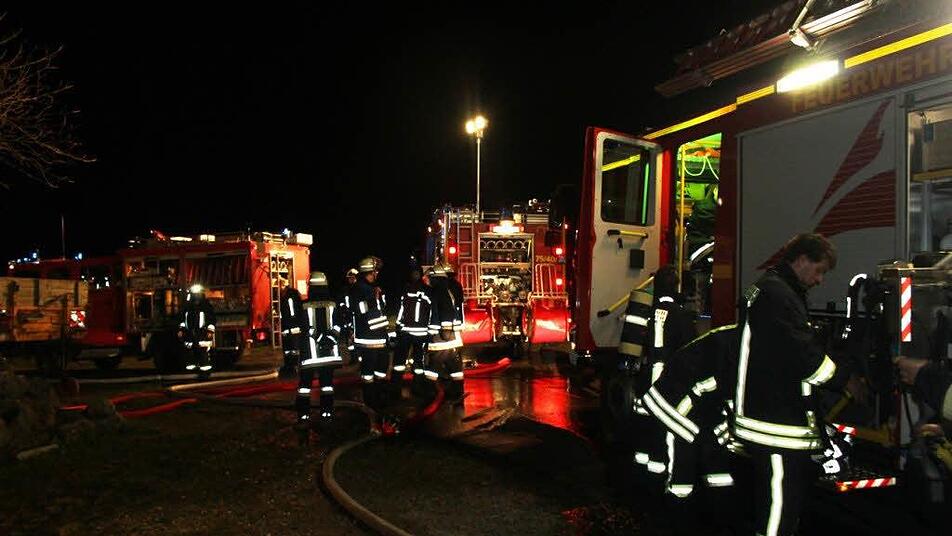 Zum Glück brannte nicht die Halle des Bauhofs selbst, sondern eine größere Menge an deren Giebelseite gelagertes Holz. Dennoch musste zunächst ein Übergreifen der Flammen auf das Gebäude verhindert werden.