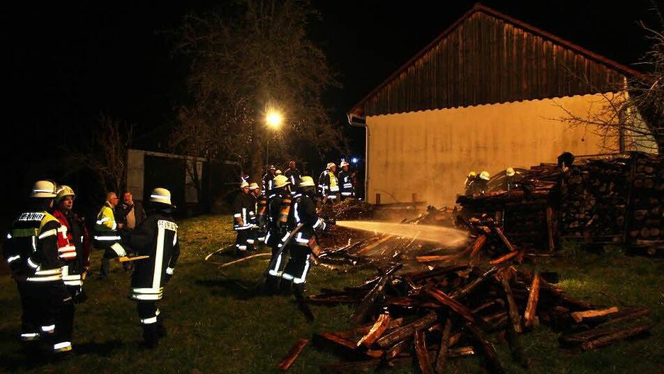 Am Gründonnerstag um 1 Uhr rücken die Feuerwehren zu einem brennenden Holzstapel aus. Während der Löscharbeiten brennt es auch an anderer Stelle.