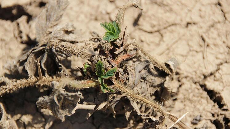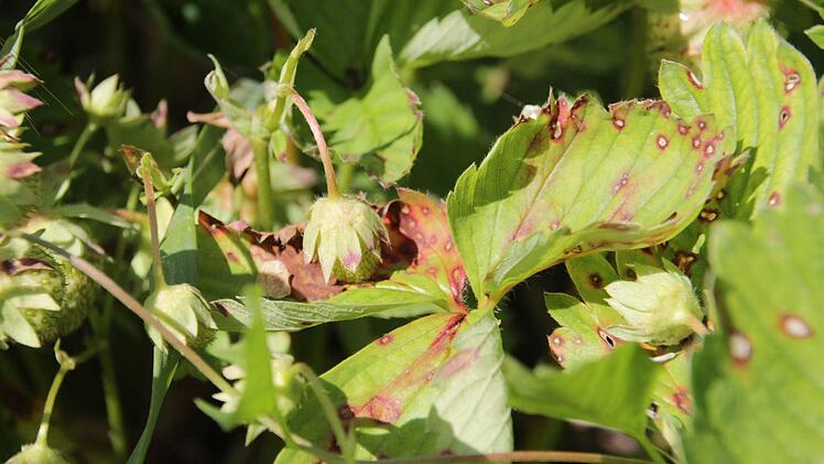 Und die Himbeeren, eine ertragreiche Sorte mit großen Früchten, waren perfekt. Jetzt bilden zwei Erdbeerfelder ein Bild des Jammers. Eine Jungpflanzung ist nahezu ein Totalausfall. Das Feld sieht aus wie eine Wüste. Außer Disteln und Quecken wächst kaum was. Vereinzelt fristet eine verkümmerte Pflanze ihr Dasein. Das zweite überschwemmte Feld, das für die Hauptproduktion gedacht war, kann Tom Bertelshofer immer noch nicht mit dem Traktor befahren, ohne metertiefe Spuren zu hinterlassen. Die Blätter der Erdbeerpflanzen haben gelb-braune Flecken; statt großer, aromatischer, saftiger Früchte hängen kleine, verkümmerte Beeren an den Fruchtständen. "Wir haben die Früchte sofort im Labor untersuchen lassen, ob wir sie verkaufen dürfen.