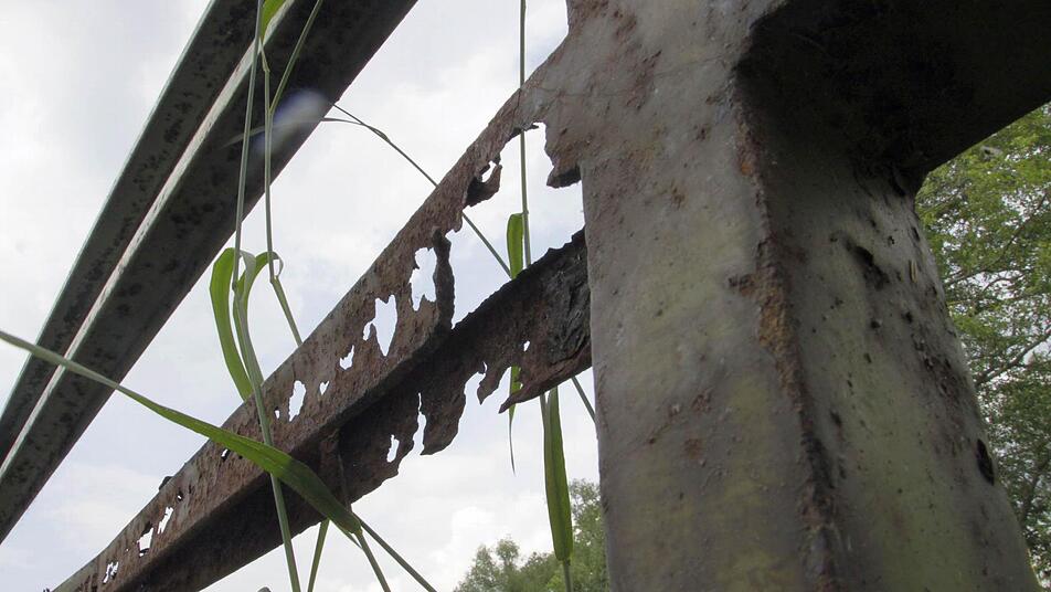 Auch in die Geländer hat der Rost riesige Löcher gefressen.