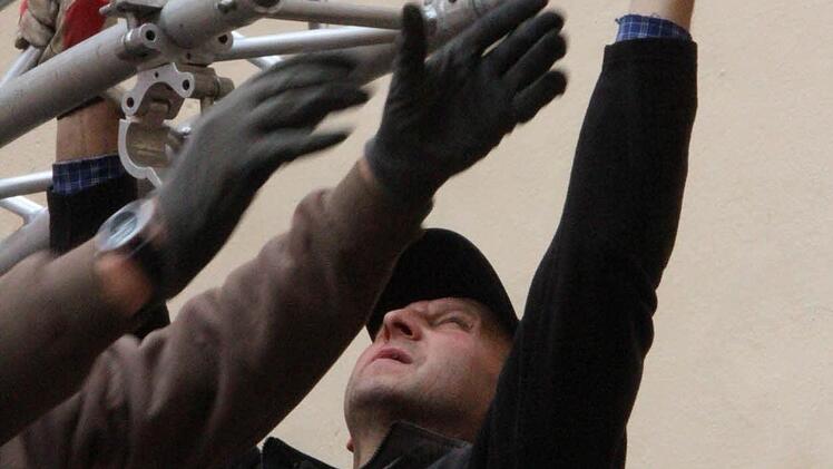 Es sieht ein wenig so aus wie Bastelarbeiten für Männer. Fünf Mitarbeiter des städtischen Bauhofes haben gestern die Einzelteile der neuen Bühne im Innenhof der Kaiserpfalz zusammengesteckt. Premiere hat die Bühne am Freitagabend, wenn das Jugendensemble des Forchheimer Brettla in der Kaiserpfalz auftritt.